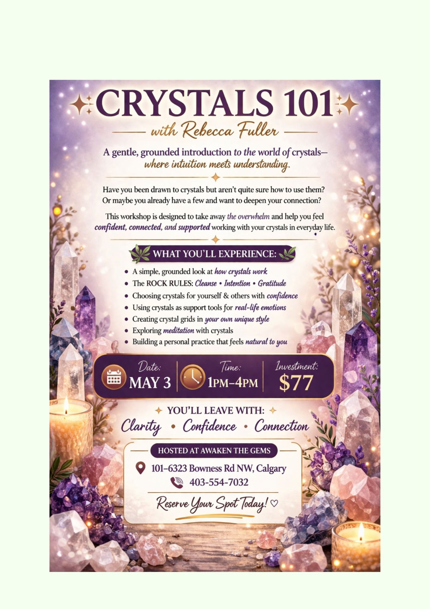 Rebecca offers remote confidential healing sessions, where you are the centre of attention for whatever your healing needs. It is like no other healing experience out there, and no session is ever the same. Click HERE to learn more (Crystals, Reiki, Chakra Cleanse & Balance, or Intuitive Coaching with Angel Cards), as there are many services and some workshops available. Once you know what service you would like, contact Rebecca at [email protected] to arrange a session, or use the online booking tool.